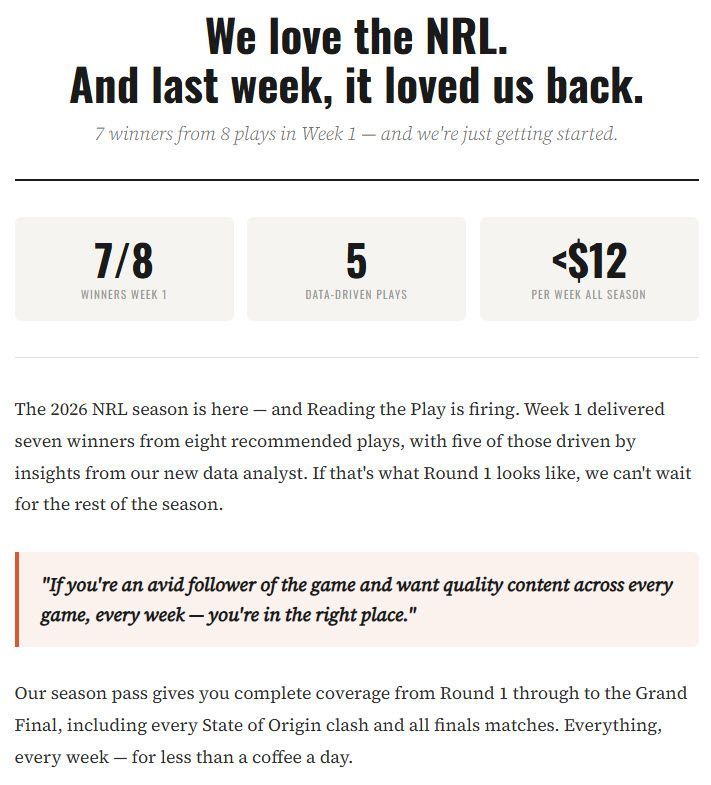Reading the Play · NRL tips, previews & data analysis · Every game, every week